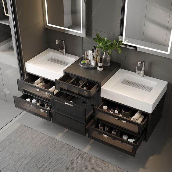 We use only premium materials and high-quality finishes for durability and long-lasting appeal. From concept and design to fabrication and installation, our team works with you to choose the right layouts, colors, and hardware. The result is custom vanities and cabinets that elevate your bathroom’s look while offering smart, efficient storage solutions.